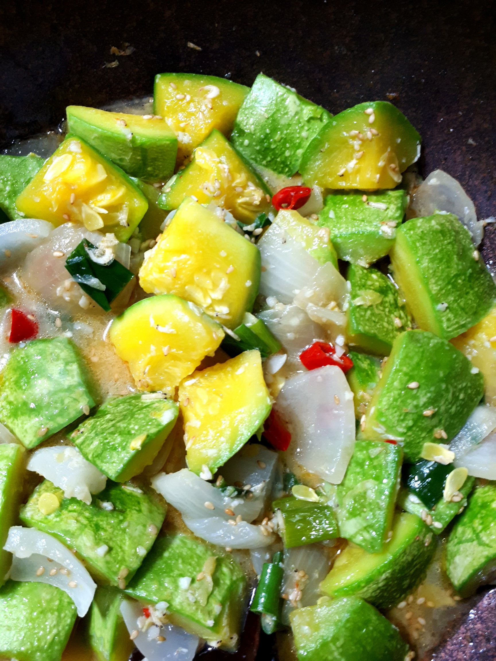 Sencillo y delicioso estofado de calabacín redondo con camarones fermentados