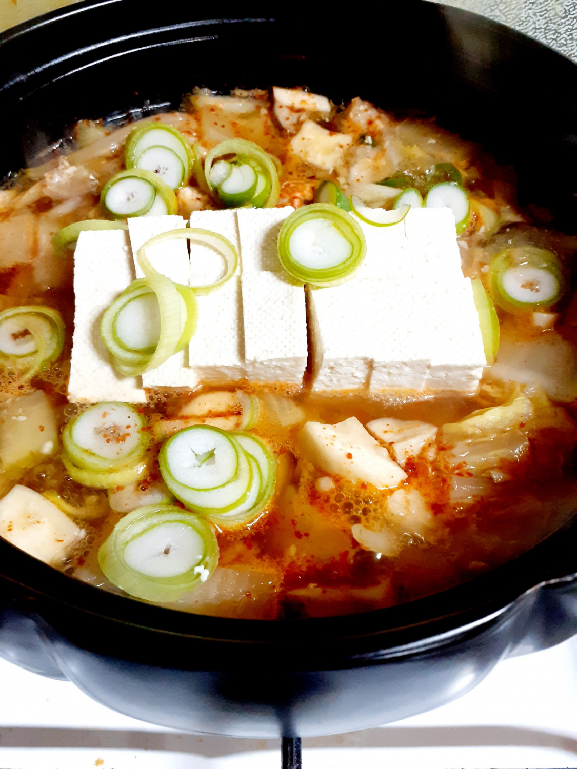 Finalmente, agrega el tofu cortado en cubos y la cebolleta en juliana. Deja que hierva a fuego lento hasta que el tofu esté caliente y la cebolleta libere su aroma. Prueba el estofado y agrega una pizca de sal si es necesario para ajustar la sazón. ¡Tu delicioso y refrescante estofado de cangrejo está listo!