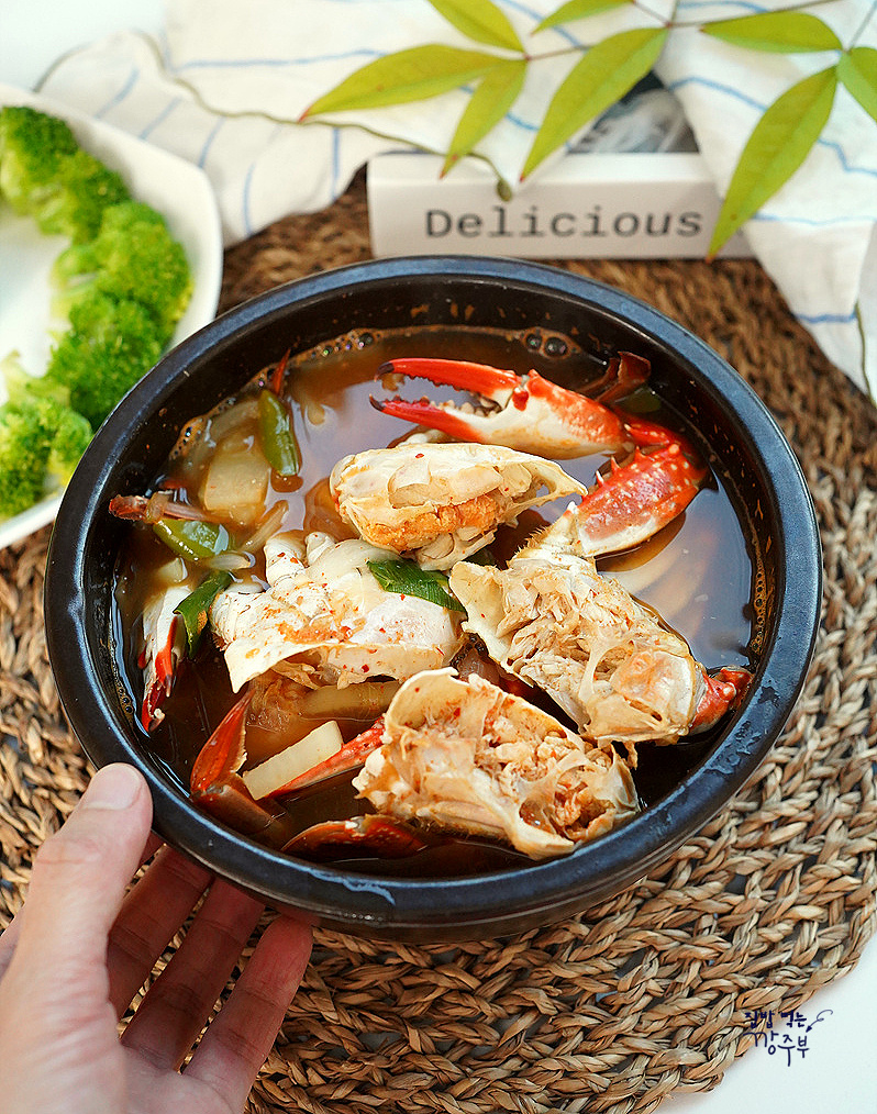 ¡Hoy comparto una receta para un estofado de cangrejo maravillosamente picante y refrescante, hecho con cangrejos congelados! Este es uno de los platos favoritos de mi esposo, y es tan satisfactorio que desaparece con dos tazones de arroz cuando no hay otros acompañamientos. Usar caldo de pastilla hace que sea increíblemente fácil lograr un sabor profundo y sabroso.