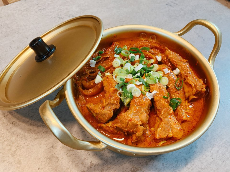 ¡Pruebe este estofado de costillas de cerdo con kimchi añejo, fácil y delicioso, mejorado con la rica bebida de soja de JungFood! La acidez del kimchi añejo y el sabroso sabor de las costillas de cerdo armonizan perfectamente con la cremosidad de la bebida de soja, creando un sabor profundo y rico. El picante se suaviza, haciéndolo disfrutable incluso para los niños sensibles al calor. Es un plato especial perfecto para que toda la familia disfrute junta.