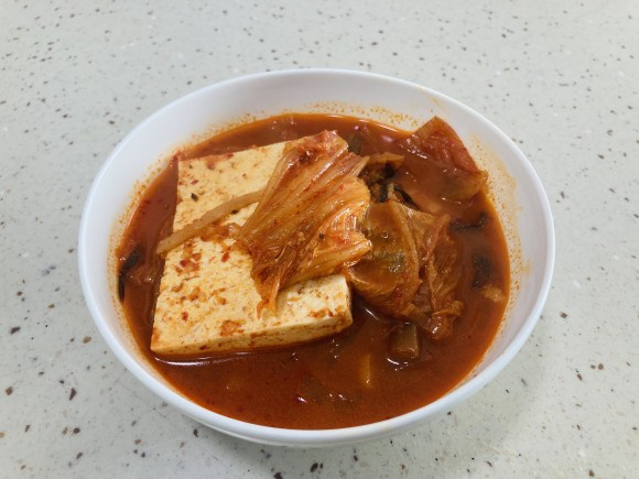 Como utilicé kimchi añejo de 3 años para esta receta, ¡estaba bastante ácido! Si tu kimchi está demasiado ácido, puedes añadir un poco de azúcar para equilibrar el sabor. Después de añadir azúcar y cocinar a fuego lento por un minuto más, sirve el delicioso estofado de kimchi en un tazón. ¡Sírvelo con un tazón de arroz caliente para una comida perfecta! ¡Disfruta!