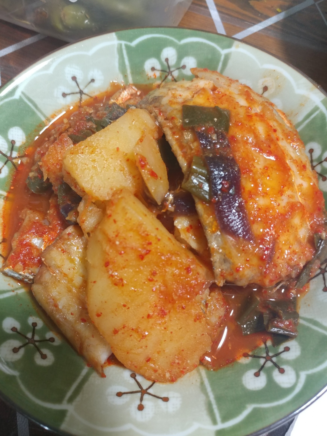 Después de añadir todos los ingredientes, vierte aproximadamente de 1.5 a 2 tazas de agua para crear un líquido de cocción. (Si prefieres un sabor menos salado, puedes añadir una pizca de sal. Si tu pez cinto ya está bastante salado, puedes omitir la sal). Lleva la olla a ebullición a fuego alto, luego reduce el fuego a medio y cocina a fuego lento durante unos 5 minutos. Después, baja el fuego al mínimo, tapa la olla y deja que se cocine a fuego lento durante 15-20 minutos hasta que los ingredientes estén completamente cocidos y tiernos. Salsear ocasionalmente el pescado y las verduras con un poco del caldo ayudará a que se cocinen de manera uniforme y absorban más sabor. ¡Disfruta de tu sabroso estofado de pez cinto con patatas!