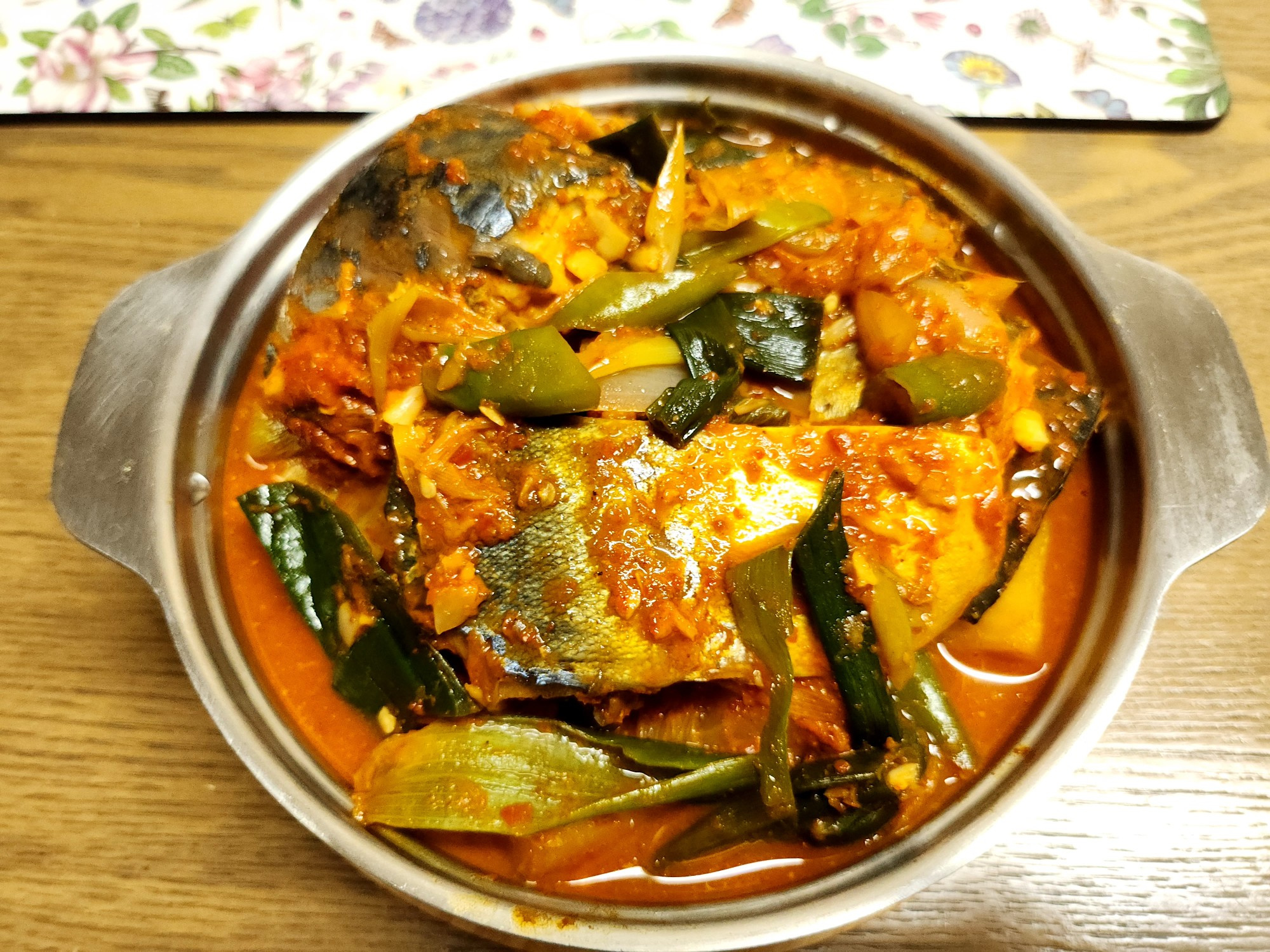 Tapa la olla y cocina a fuego medio-bajo durante unos 15-20 minutos. Deja que se estofe hasta que los sabores se mezclen, el rábano esté tierno y la caballa esté bien cocida, con la salsa ligeramente espesa. En los últimos 5 minutos de cocción, añade la cebolleta y los chiles Cheongyang cortados y cocina a fuego lento un momento más. Tu delicioso estofado de caballa salada con rábano está listo. Los sabores salados, dulces y picantes son increíblemente complementarios al arroz. ¡Sírvelo caliente, vertido sobre un tazón de arroz esponjoso, y disfruta!