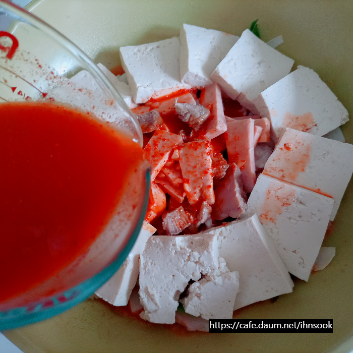 ¿Cansado de cocinar? Esta receta de ‘Duruchigi de Jibia y Tofu’ es perfecta para esos momentos en que realmente no quieres estar en la cocina. Este plato apareció una vez en la página principal de Daum, aumentando significativamente mi número de suscriptores en más de 200 personas. Es una comida o aperitivo simple pero increíblemente satisfactorio, que combina la textura masticable de la jibia, la ternura del tofu y una deliciosa salsa agridulce que sin duda te hará pedir más arroz.