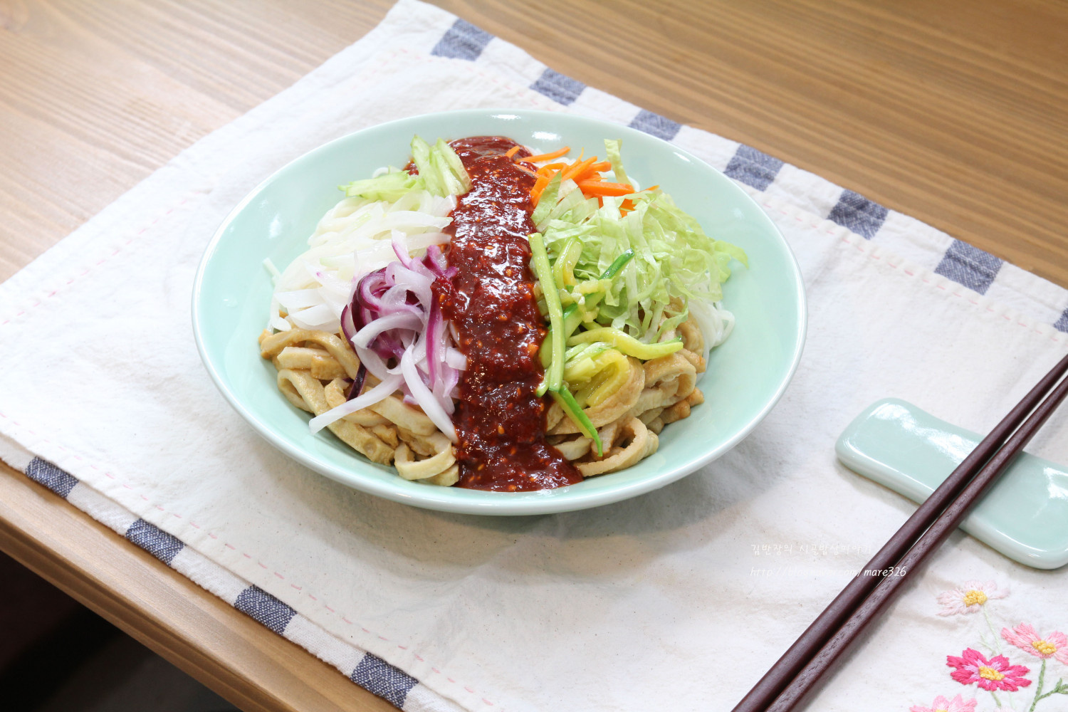 ¡El mejor snack para la noche! Receta de Bibim Guksu con mucho pastel de pescado