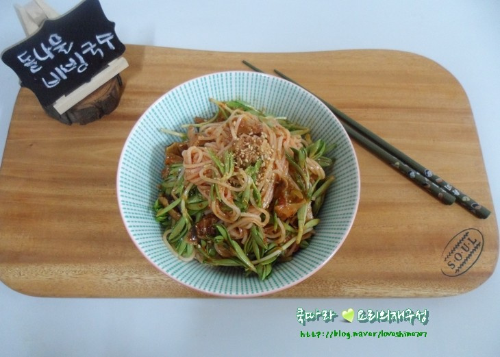 ¡Aquí tiene su vibrante y apetitoso Bibim Guksu de Caracoles Marinos y Perejil de Piedra, perfecto para despertar su paladar esta primavera! Para una comida aún más satisfactoria, considere servirlo con un poco de alga nori crujiente o un huevo duro tierno por encima. ¡Disfrute de su deliciosa creación!