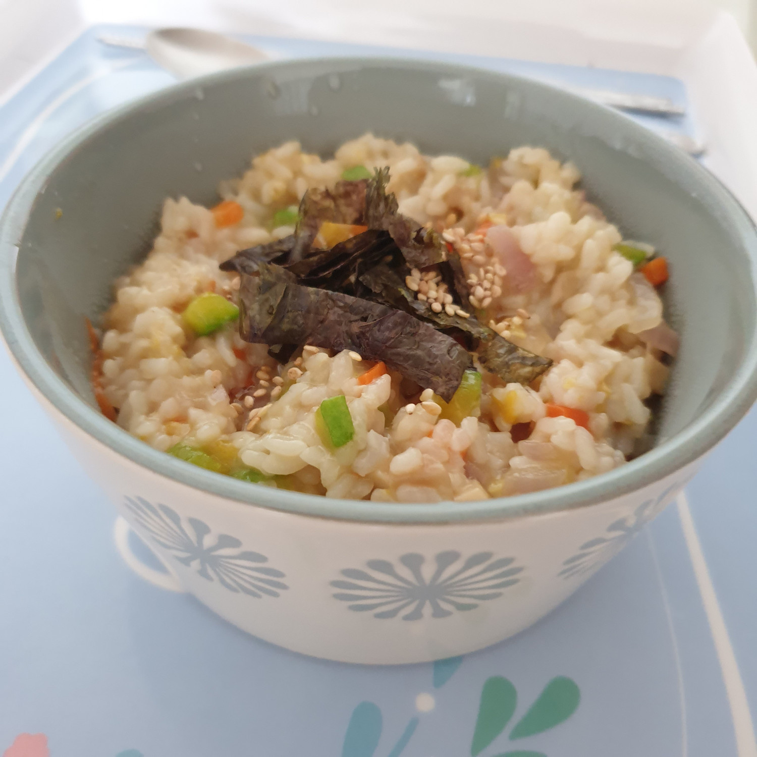 Deja que las gachas hiervan a fuego lento hasta que alcancen la consistencia espesa y cremosa deseada (unos 5-10 minutos). Sirve las gachas calientes en un bol. Decora con una pizca de semillas de sésamo y, si lo deseas, un poco de alga nori desmenuzada. ¡Tus deliciosas y nutritivas gachas de champiñones y verduras están listas para disfrutar! Son especialmente reconfortantes cuando se sirven calientes. ^^
