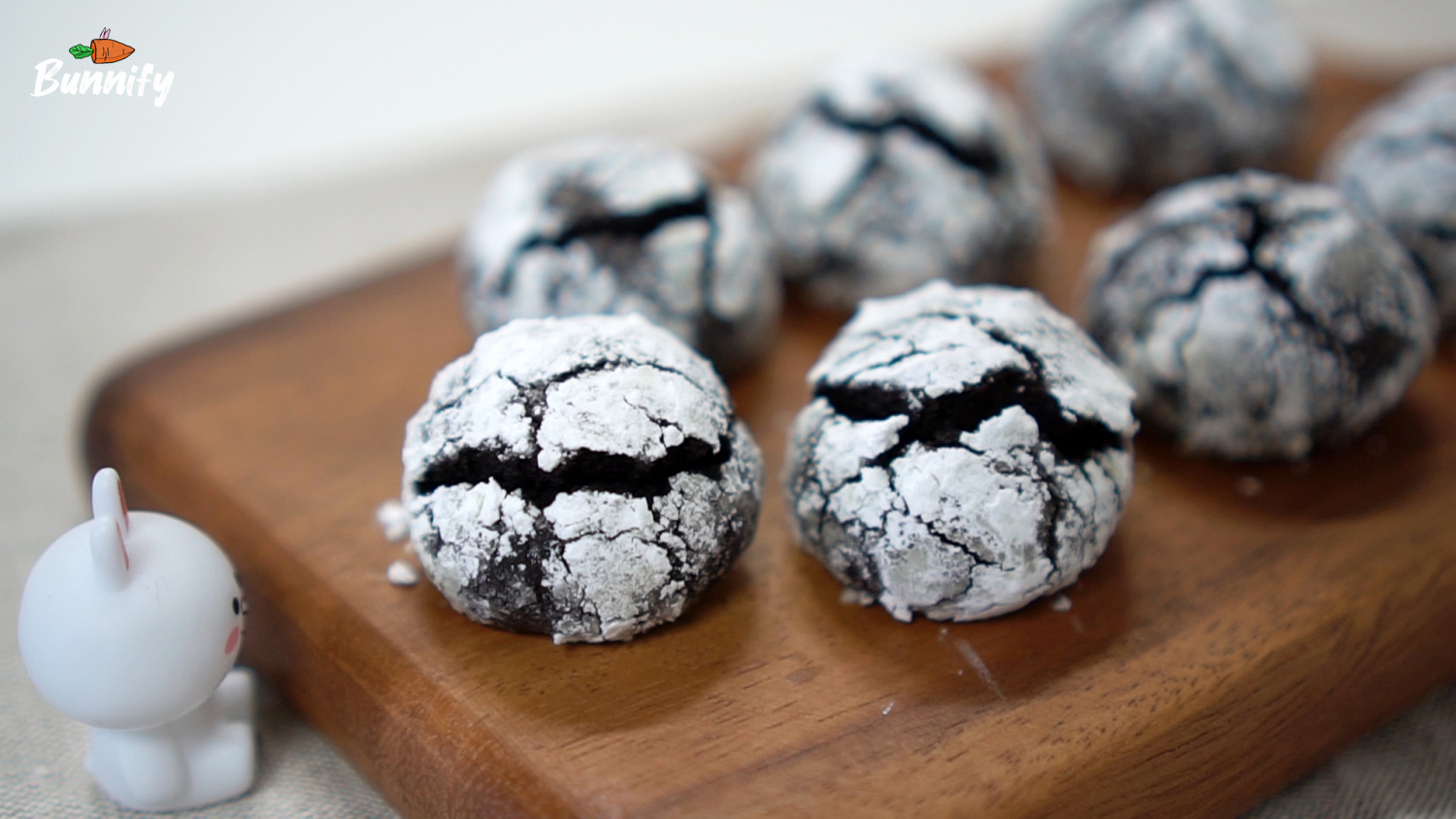 Disfruta de la deliciosa textura de estas galletas de chocolate estilo crinkle, que presumen de un exterior crujiente y un interior maravillosamente suave y masticable. Su característica apariencia agrietada añade un toque de magia a cada bocado, haciéndolas un manjar perfecto para cualquier ocasión.