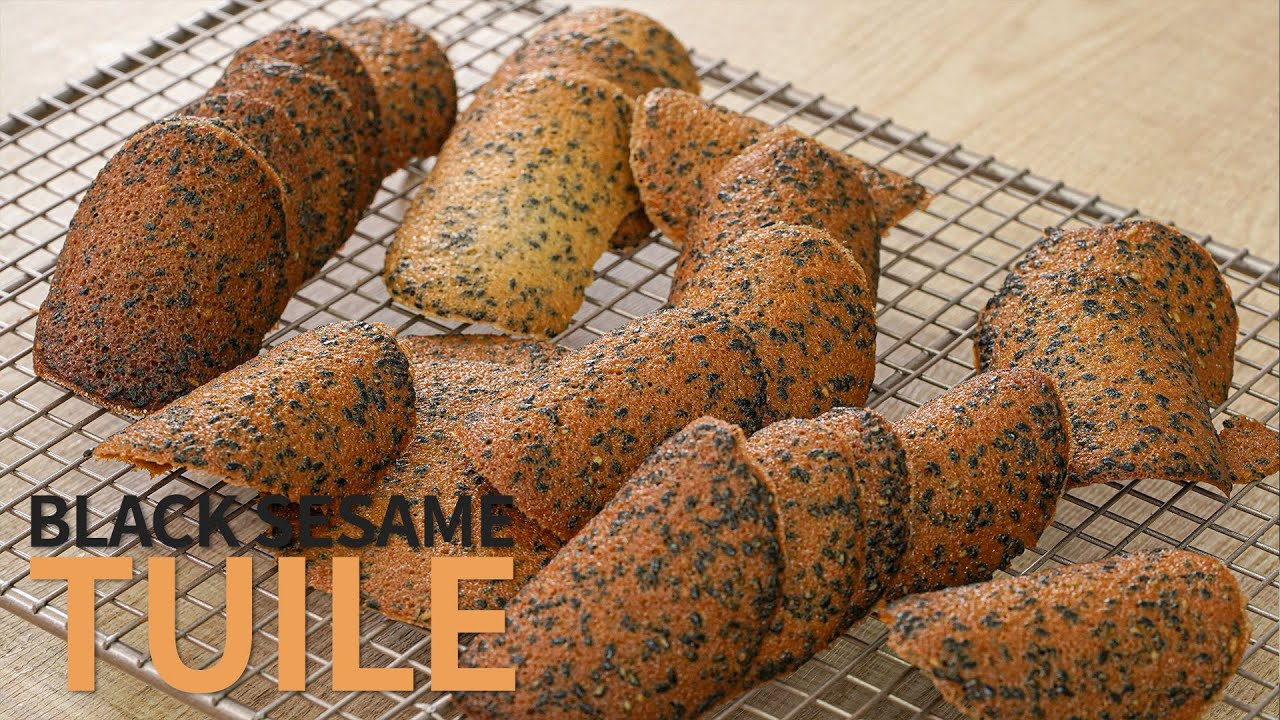 Delicadas Galletas Curvadas: Tuiles de Sésamo Negro