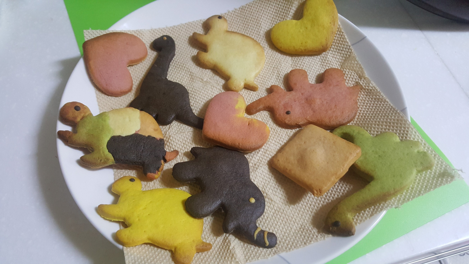 ¡El sentido del diseño de mi hijo/a es incluso mejor que el mío! Combinando diferentes masas de colores, ha creado esta galleta de tortuga maravillosamente colorida. Es asombroso ver florecer su creatividad.