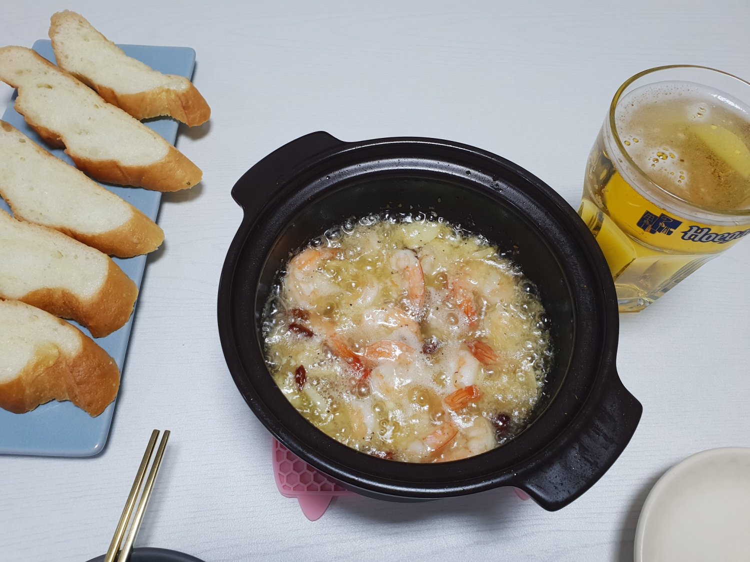 Una vez que las gambas estén perfectamente cocidas y el plato burbujee suavemente, retira inmediatamente la sartén del fuego. Prueba y ajusta la sazón con un poco más de sal de hierbas si es necesario. Sirve caliente con rebanadas de pan baguette crujiente para mojar en el sabroso aceite. ¡Este aceite también es fantástico para mezclar con pasta y hacer un rápido segundo plato!
