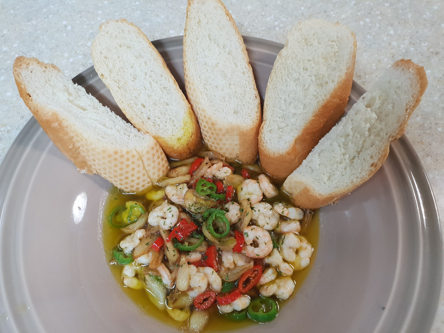 Sirve caliente con rebanadas de pan baguette tostado. ¡Mojar el pan crujiente en el sabroso aceite de oliva es algo que no te puedes perder, está increíblemente delicioso! Disfruta de este delicioso plato como una comida sustanciosa o un aperitivo sofisticado.