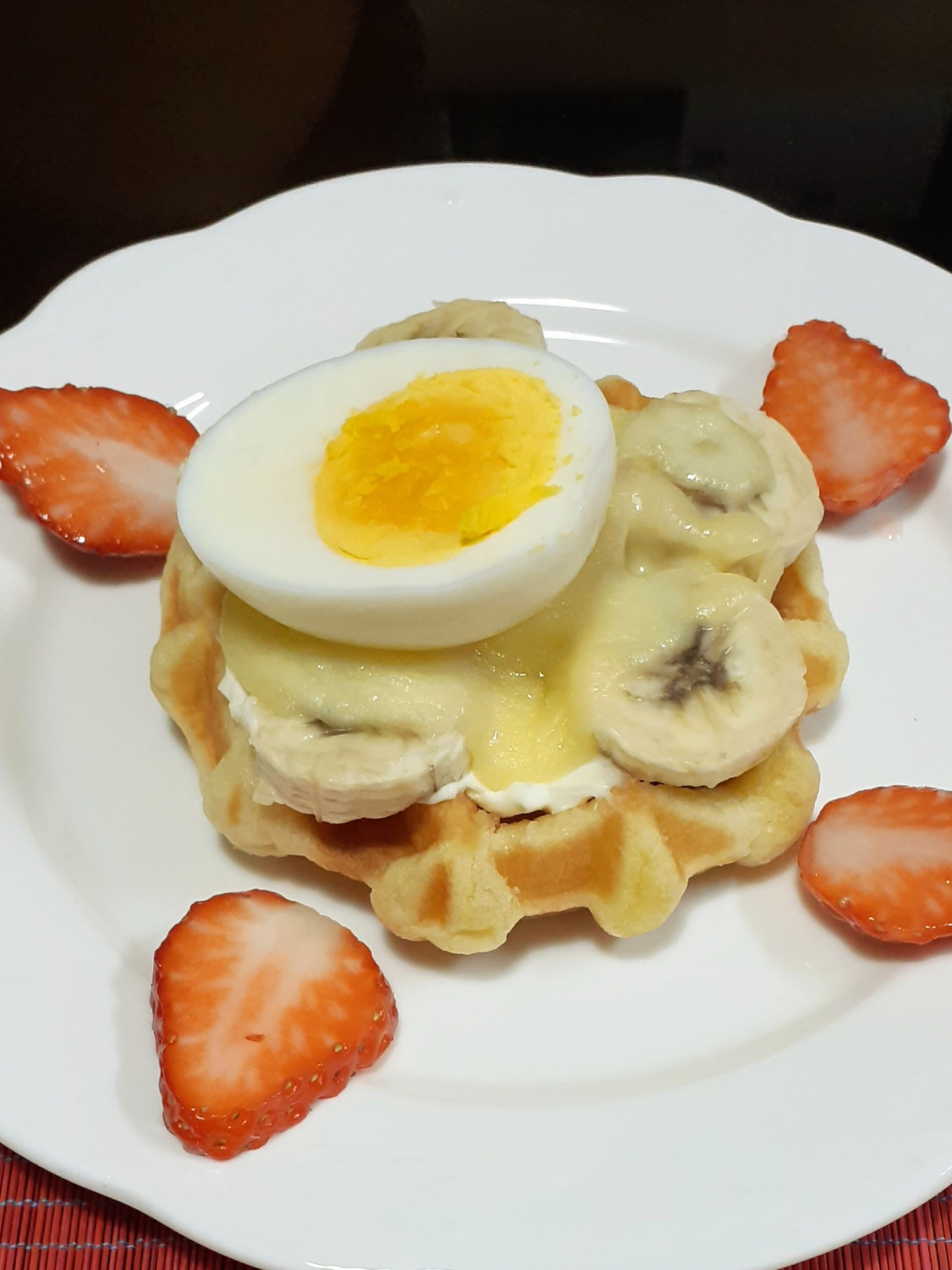 Gofres Sencillos de Queso y Plátano con Huevo Cocido