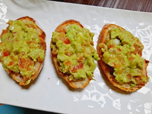 ¡Crea un sándwich abierto especial usando este guacamole fresco! Unta una capa fina de queso crema suave sobre una rebanada de baguette ligeramente tostada, luego cubre generosamente con el guacamole preparado. Esto resulta en una opción de brunch saludable, atractiva visualmente y deliciosa.