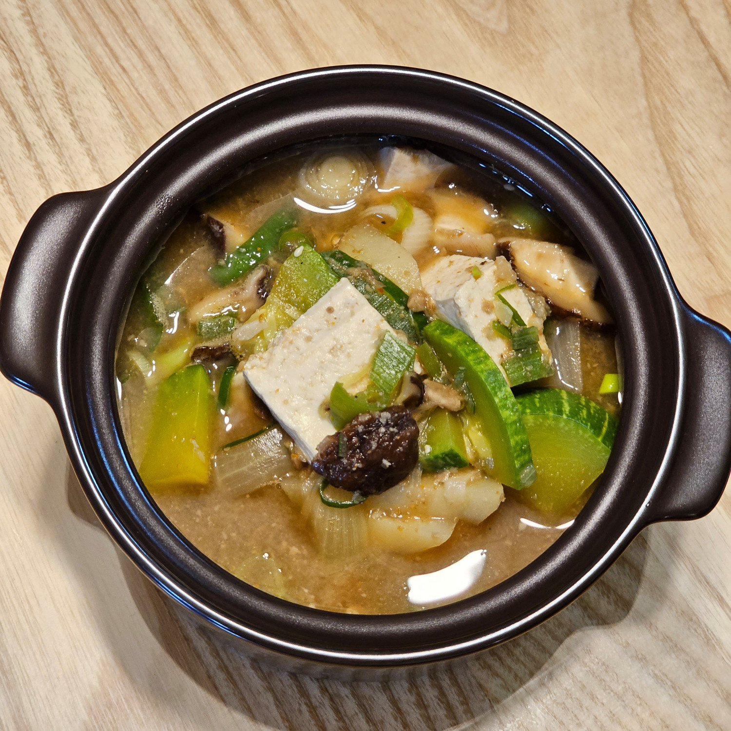 Guiso Coreano de Pasta de Soja (Doenjang Jjigae) con Caldo de Anchoas y Algas