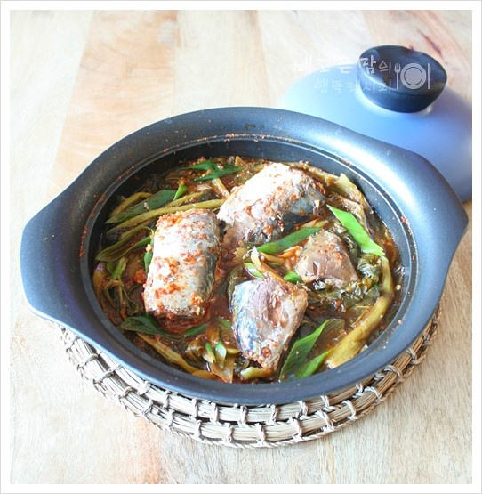 Guiso de Caballa con Verdes de Rábano Secos (Mucheong)