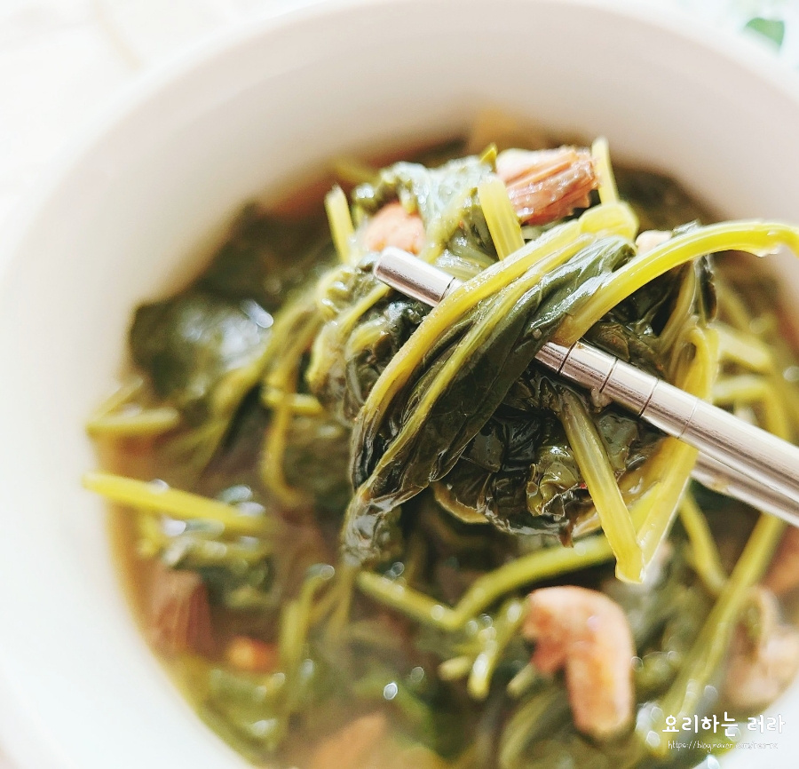 Aunque la malva (auk) a menudo se considera una verdura de otoño, en primavera también es tierna y deliciosa. La malva de primavera, aunque no esté en su temporada alta, ofrece un sabor igualmente rico y sabroso. Su delicada textura significa que no necesita ser frotada o exprimida vigorosamente como la malva de otoño. Esta receta le permite simplemente añadirla directamente al caldo a fuego lento, lo que la hace increíblemente fácil de preparar. Disfrute de esta deliciosa sopa que captura perfectamente la frescura de la primavera, combinando malva tierna con el umami de los camarones secos y la reconfortante profundidad de la pasta de soja.