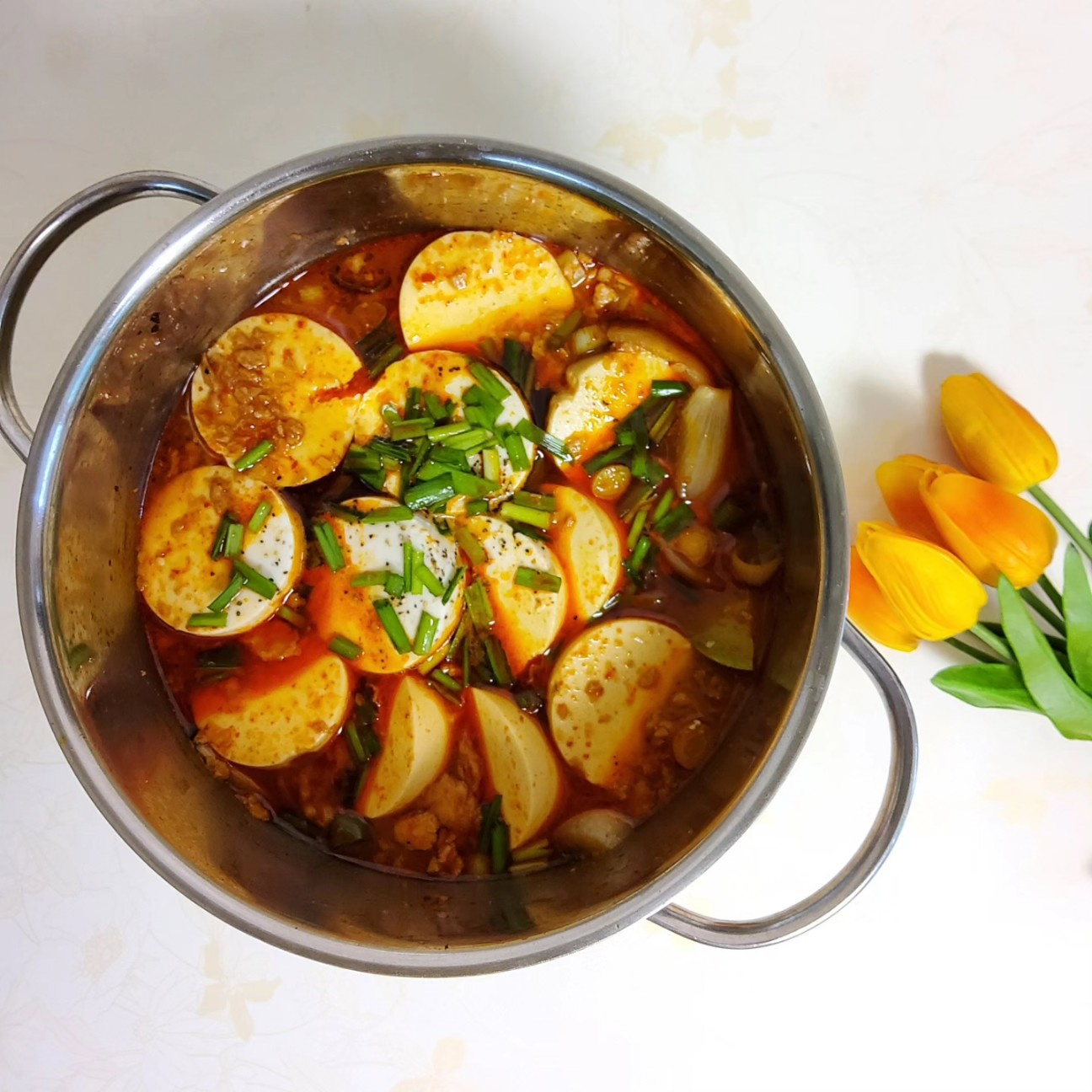¡Tu Guiso de Spam y Tofu Suave, humeante y picante, está listo! Sírvelo sobre un tazón de arroz y disfruta de esta comida increíblemente deliciosa. ¡Aprovecha al máximo tu Spam sobrante!