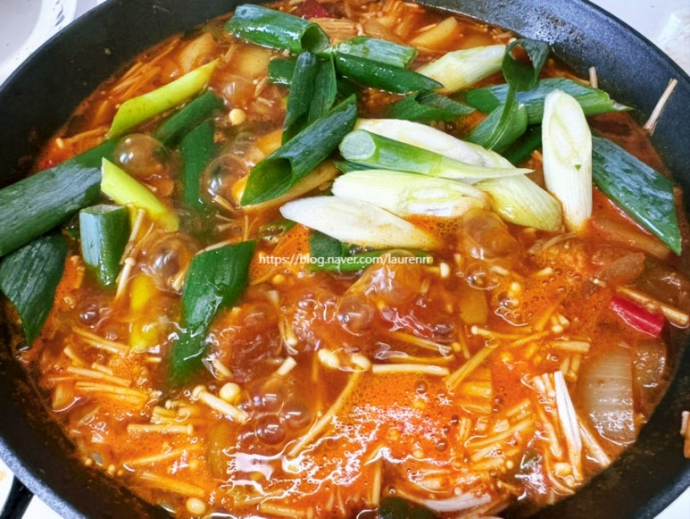 Si te gusta picante, añade una cantidad generosa de chiles Cheongyang. Cortarlos en diagonal después de quitarles las semillas te dará un toque picante maravilloso. (Ajusta el nivel de picante a tu preferencia.)