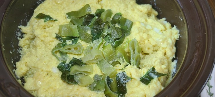 Este es un ‘Gyeranjjim’ (plato de huevo al vapor) preparado con huevos y cebolleta de tu refrigerador, perfecto como guarnición casera.