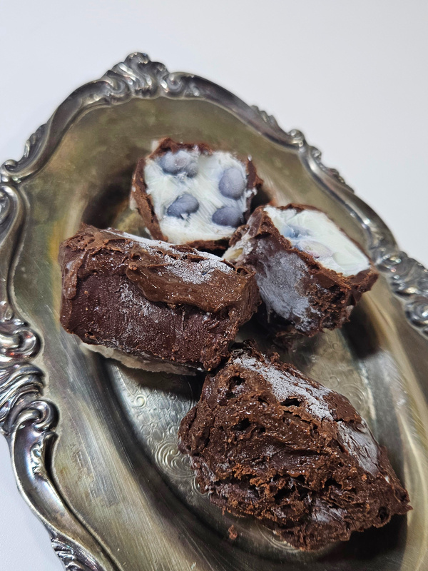 Crear Helados Cubiertos de Chocolate: Sumerja los trozos de helado de yogur con arándanos cortados en el chocolate con leche derretido para cubrirlos. El recubrimiento de chocolate se endurecerá rápidamente. Una vez cubiertos, devuelva inmediatamente los trozos de helado al congelador para que se asienten. Puede optar por aplicar una capa fina o gruesa de chocolate según su preferencia para obtener diferentes estilos.