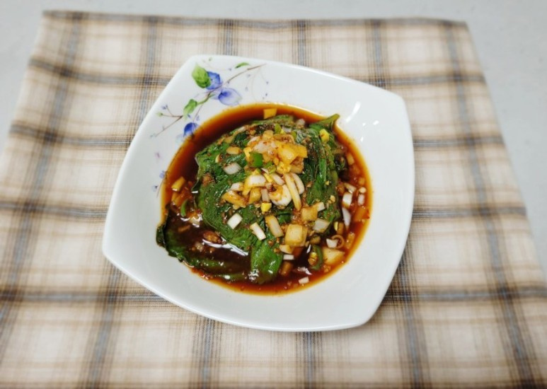 ¡Listo! Tus deliciosas hojas de perilla al vapor están preparadas. ¿No se ven apetitosas las aromáticas hojas y el sabroso aderezo?
