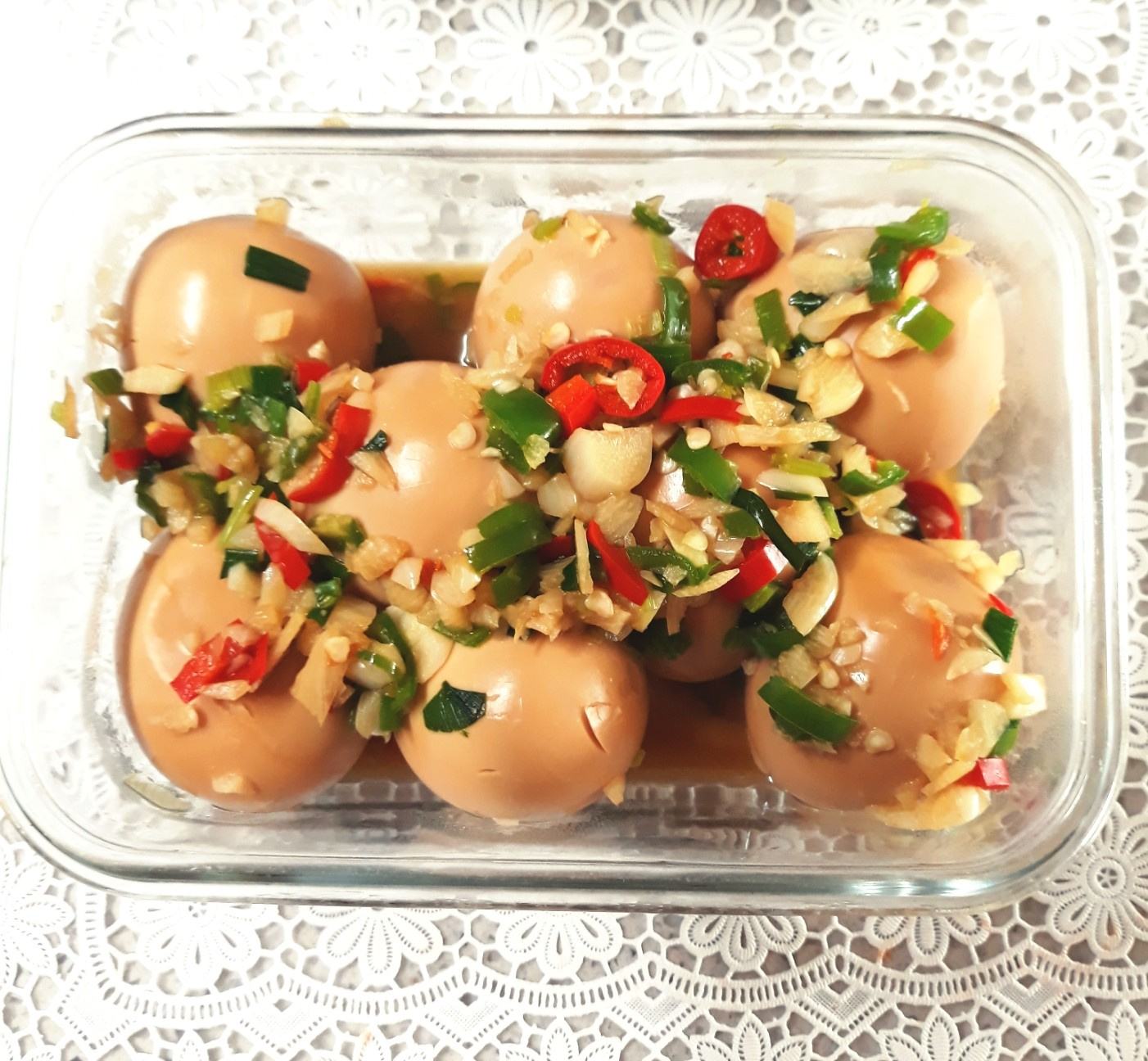 Huevos Guisados en Salsa de Soja Baja en Sodio, Sabrosos y Ligeramente Picantes