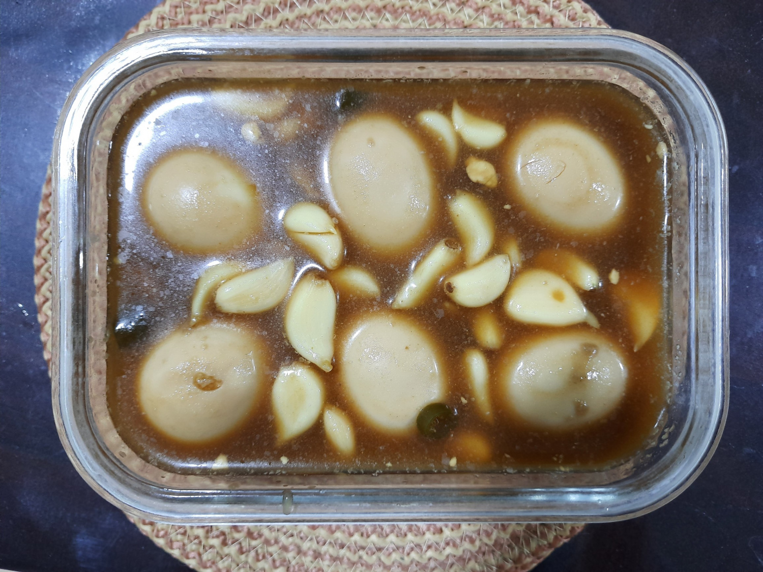 Una vez enfriados, transfiere los huevos y el ajo guisados a un recipiente hermético y guárdalos en el refrigerador. ¡Disfruta de tus deliciosos huevos guisados caseros con arroz cuando quieras!