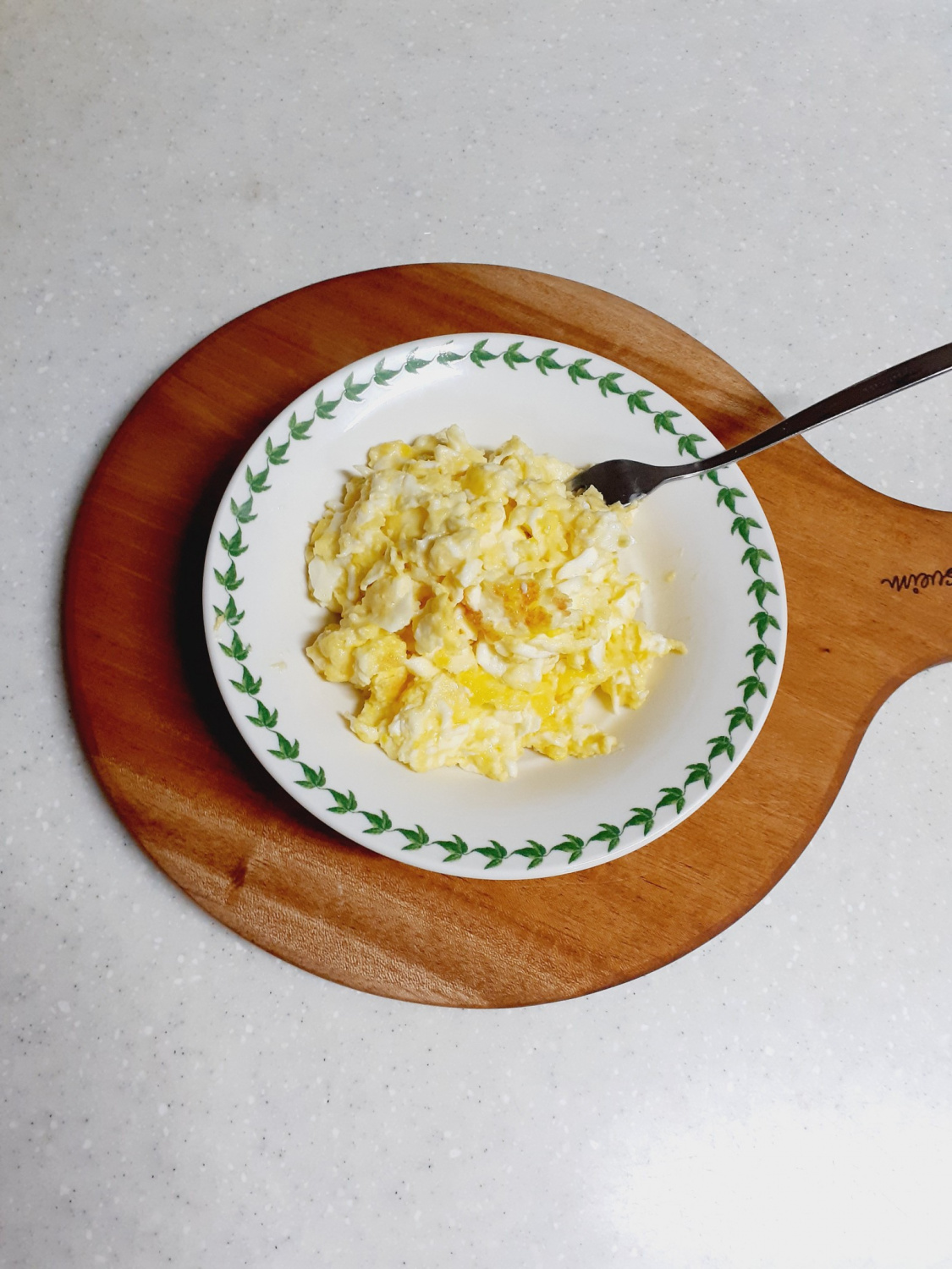 Da forma a los huevos revueltos cortados en una forma redonda en la sartén y sírvelos de manera atractiva en un plato. Si prefieres tus huevos revueltos más cocidos, puedes cocinarlos durante 10-20 segundos adicionales en la sartén antes de emplatar. ¡Disfrútalos inmediatamente mientras estén calientes!
