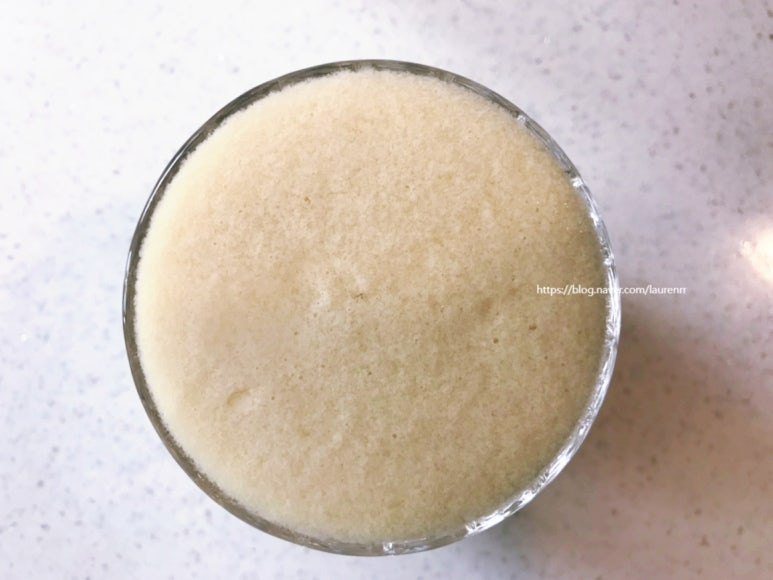 ¡Tu delicioso jugo de ñame está listo! Viértelo en un vaso para una bebida refrescante y saludable.