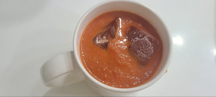 ¡Y aquí lo tienes, tu delicioso y fresco jugo de tomate casero está completo! Sírvelo en un vaso y disfrútalo frío. Saborearás el rico sabor y el sutil dulzor de los tomates. ¡Disfruta de tu jugo personalizado, saludable y delicioso!