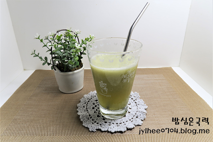 ¡Listo! Su ‘Jugo de Cebada Tallo y Pera de Cheongidan’ está preparado, ayudándole a controlar su salud y prevenir el síndrome metabólico. Disfrútelo como sustituto del desayuno o como un bocadillo saludable para aumentar su energía y bienestar. ¡Beba y manténgase saludable!