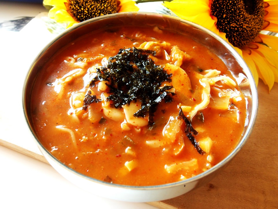 #SopaCoreanaPicante #FideosSustanciosos #RecetaKalguksuKimchi #ConTteokgukTteok #SaborIntenso