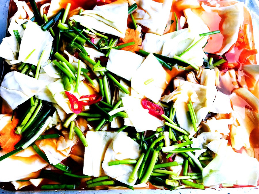 Ingredientes para el Kimchi de Agua- 1/2 cabeza de repollo (aprox. 500g)