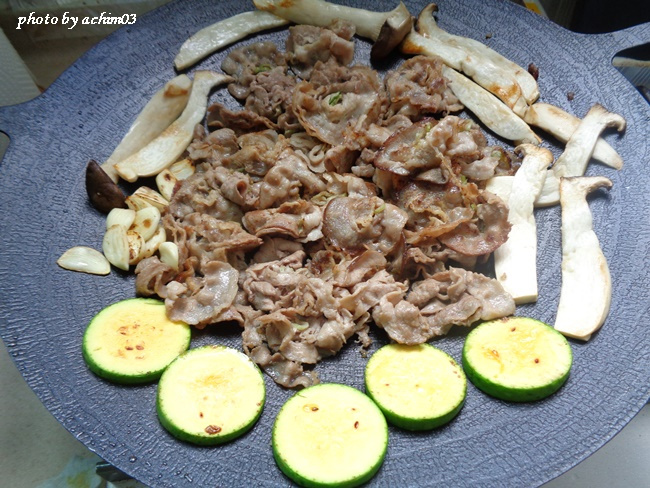 Sirve la panceta de cerdo con cebolleta bien asada junto con el calabacín y las setas ostra rey doradas, ¡y disfruta! Está deliciosa servida con arroz o envuelta en hojas de lechuga fresca (ssam). Las aromáticas cebolletas combinadas con la rica y sabrosa panceta de cerdo crean una experiencia de sabor extraordinaria.