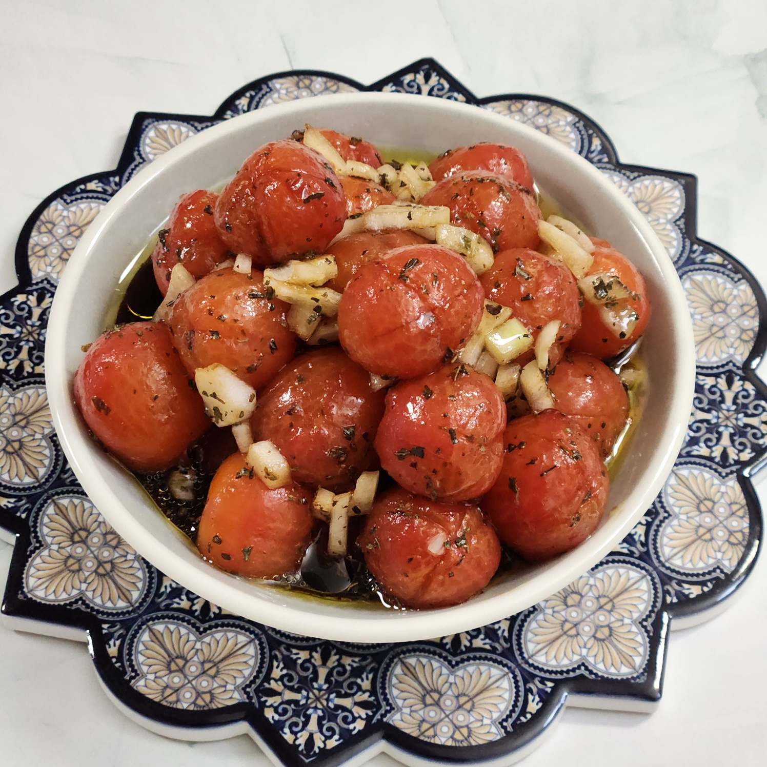 Prepare un delicioso y refrescante marinado de tomates frescos o tomates cherry con un equilibrio perfecto de dulzura y acidez. Combina maravillosamente con platos de carne y también es delicioso servido como ensalada. Esta receta ofrece una combinación ideal de salud y sabor.