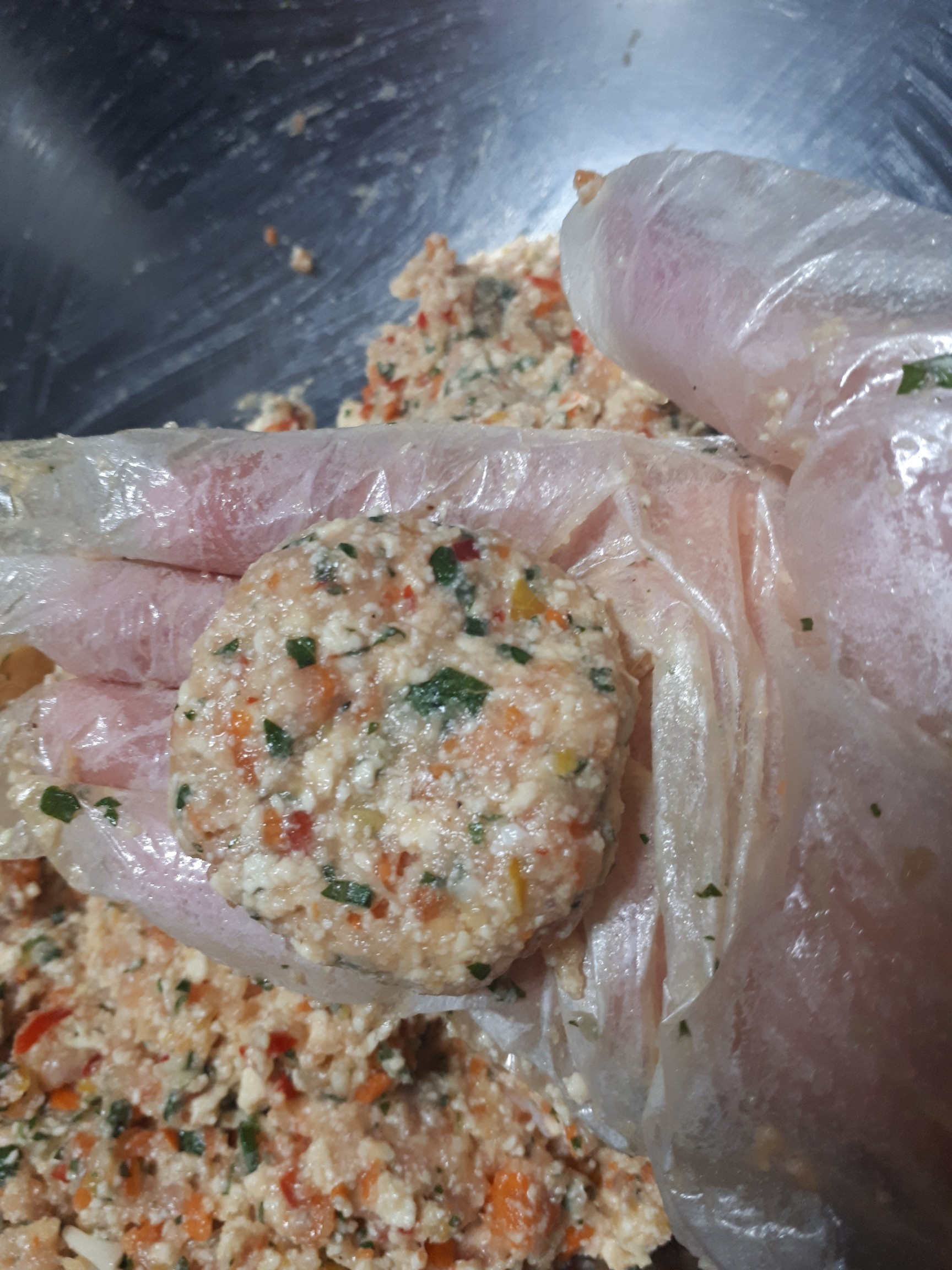 Para el tofu, escáldelo brevemente en agua hirviendo, luego enjuague con agua fría. Exprima la mayor cantidad de humedad posible usando una gasa o toallas de papel; esto es crucial para evitar que la masa quede demasiado acuosa. Agregue 1 cucharada de ajo picado para darle sabor, 2-3 cucharadas de almidón para ligar, 1 cucharadita de sal para sazonar y una pizca de pimienta negra.
