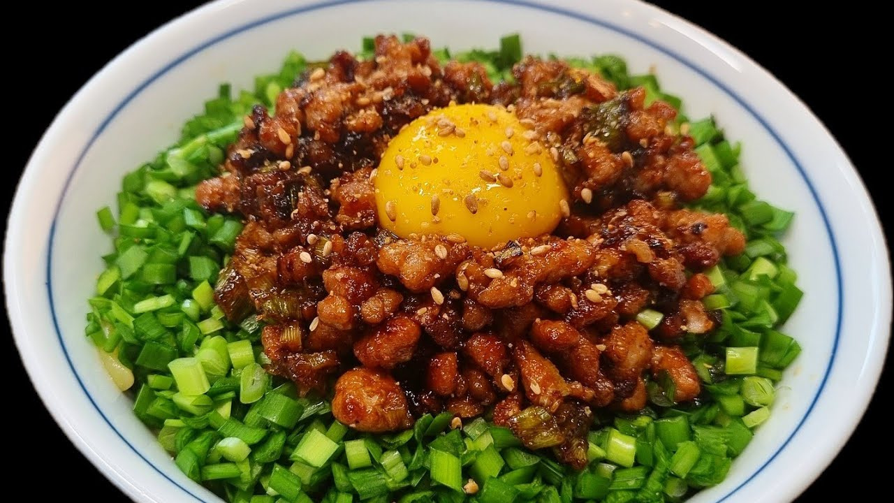 Dispón los fideos condimentados en un bol para servir. Vierte generosamente la mezcla de carne de cerdo preparada sobre los fideos. Finalmente, decora artísticamente con el cebollino picado y las algas sazonadas desmenuzadas. Si lo deseas, espolvorea un poco de sésamo. Colocar la yema de huevo en el centro añadirá riqueza y sabor. ¡Mezcla todo bien y disfruta de tu delicioso mazesoba!