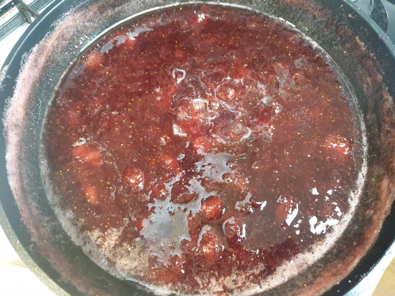 Mientras la mermelada hierve, puede aparecer espuma en la superficie. Es mejor retirarla para obtener un sabor más limpio y una mejor conservación de la mermelada.