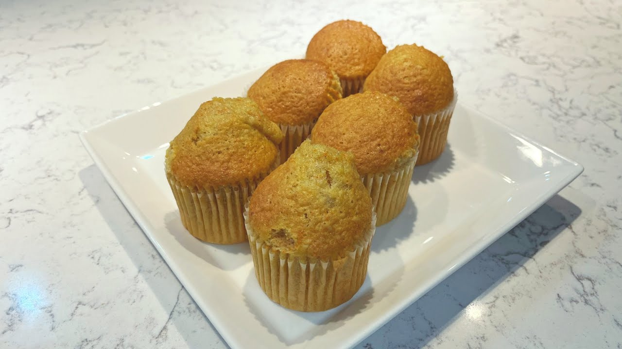 Hornea en un horno precalentado a 170°C (340°F) durante unos 25 minutos. El tiempo de horneado puede variar según el horno, así que verifica si están listos insertando un palillo en el centro de un muffin. Si sale limpio, están hechos. Si aún sale masa, hornéalos unos minutos más.