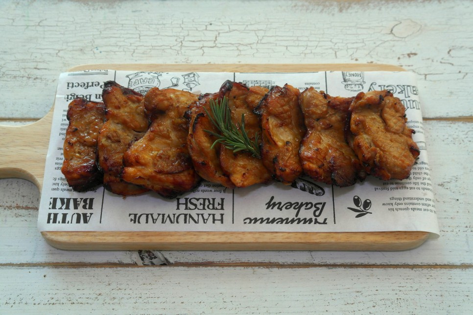 En un bol mediano, preparemos el sabroso adobo. Combina 4 cucharadas de salsa de soja, 1 cucharada de mirin, 1 cucharada de extracto de ciruela, 1 cucharada de azúcar, 1 cucharada de ajo picado, 1 cucharada de salsa de ostras y 1/4 cucharadita de pimienta negra. Bate estos ingredientes hasta que estén bien combinados para formar un adobo suave.