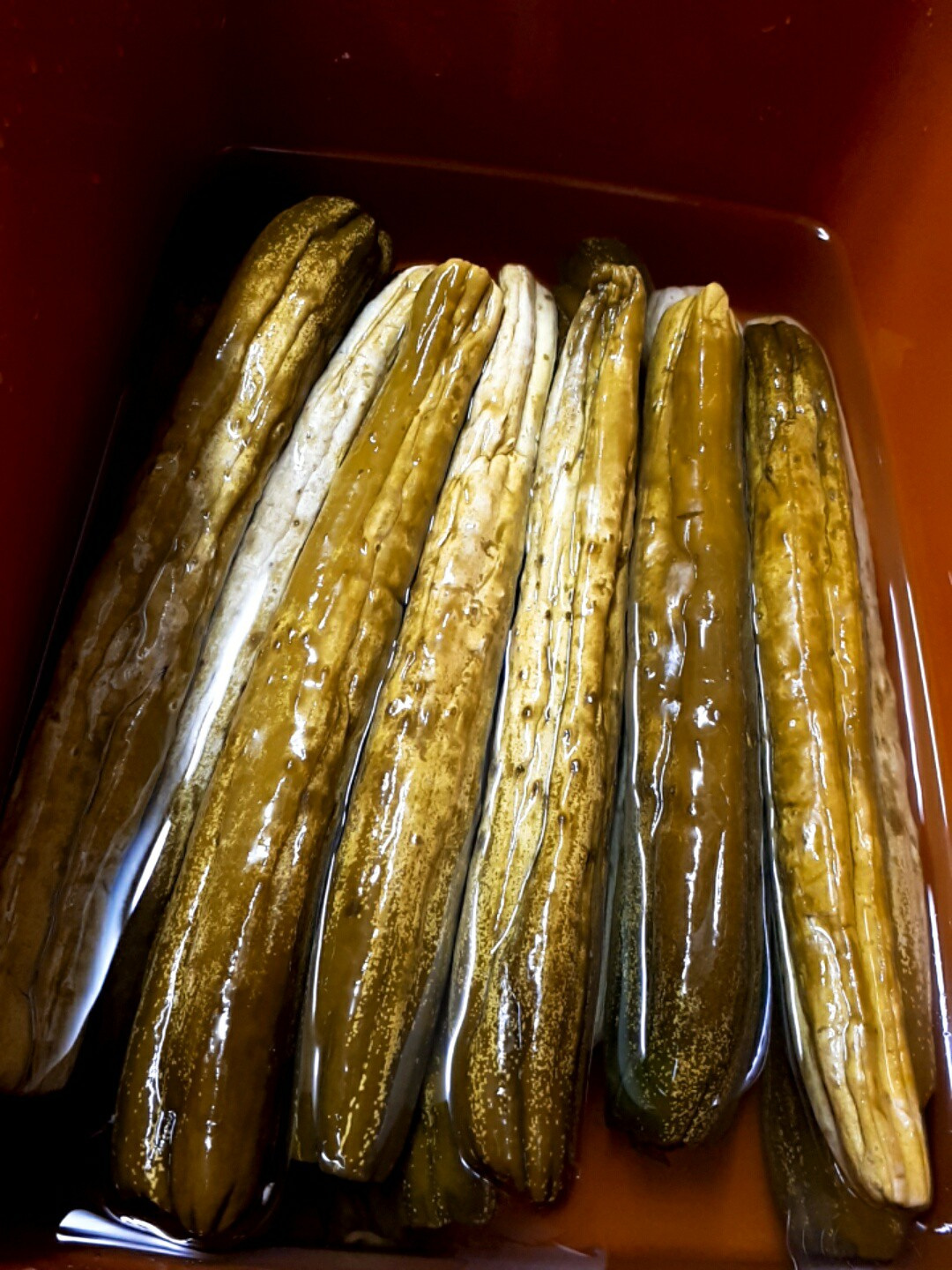 Después de fermentar durante otros 3 a 4 días, los pepinos estarán bellamente maduros de un delicioso color amarillo. Una vez que el oi-jji esté listo, sácalo de la salmuera, exprime ligeramente el exceso de líquido y guárdalo en el refrigerador. ¡Podrás disfrutar de tu oi-jji fresco y crujiente de inmediato! (Consejo: Para prepararlo como guarnición, enjuaga el oi-jji con agua fría para eliminar el exceso de sal, luego sazónalo a tu gusto.)