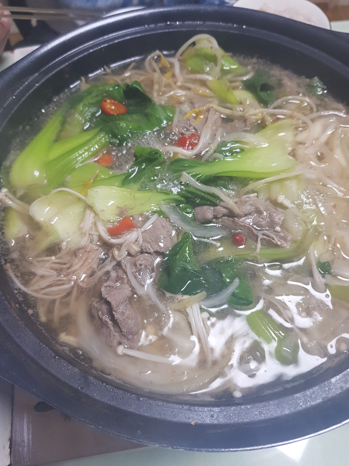 ¡Es hora de saborear una deliciosa cucharada de olla caliente, disfrutando de la tierna carne y los vegetales con el caldo cálido y sabroso! Puedes colocar algunos de los ingredientes cocidos sobre un tazón de arroz, o simplemente disfrutar el caldo por sí solo – es maravillosamente reconfortante. ¡Este plato es la manera perfecta de calentarte y nutrirte, especialmente en un día frío!