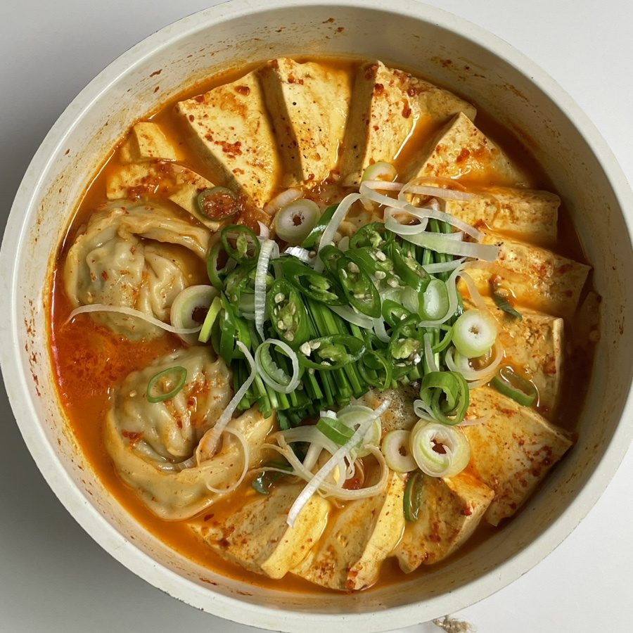 Olla Caliente de Tofu y Albóndigas (Mandu) Reconfortante y Picante