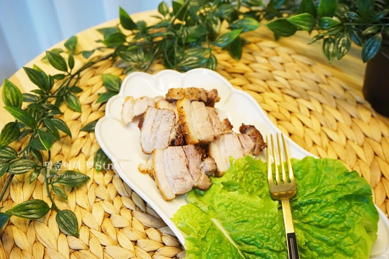 Aunque puedes cocinar la panceta de cerdo inmediatamente, me gusta dejarla reposar unos 15 minutos para que los condimentos penetren. Este trozo pesa aproximadamente 250g, lo que es una buena porción para una persona.