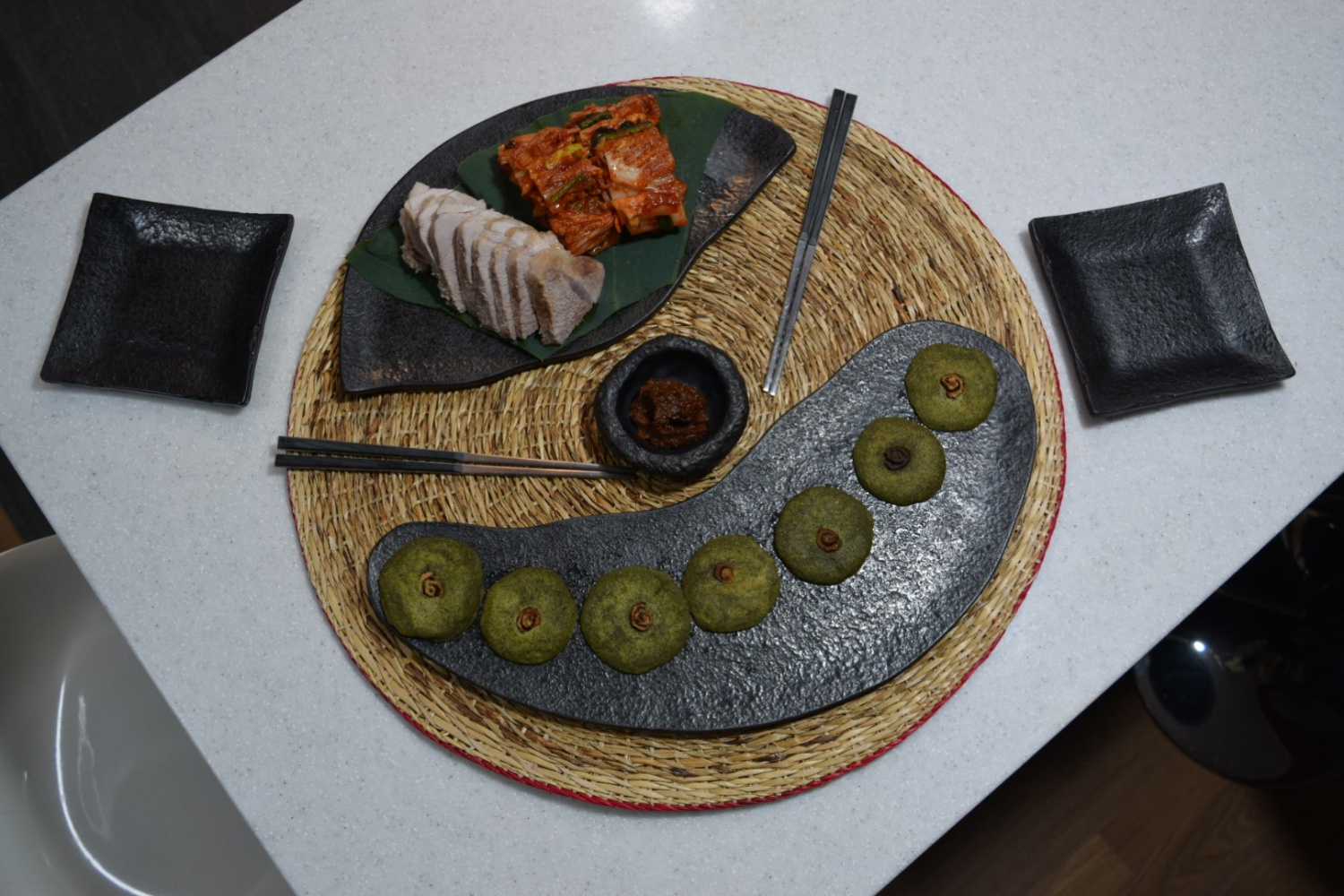 Un Trío de Sabores con Hoja de Loto: Panceta de Cerdo, Kimchi y Tortitas de Loto