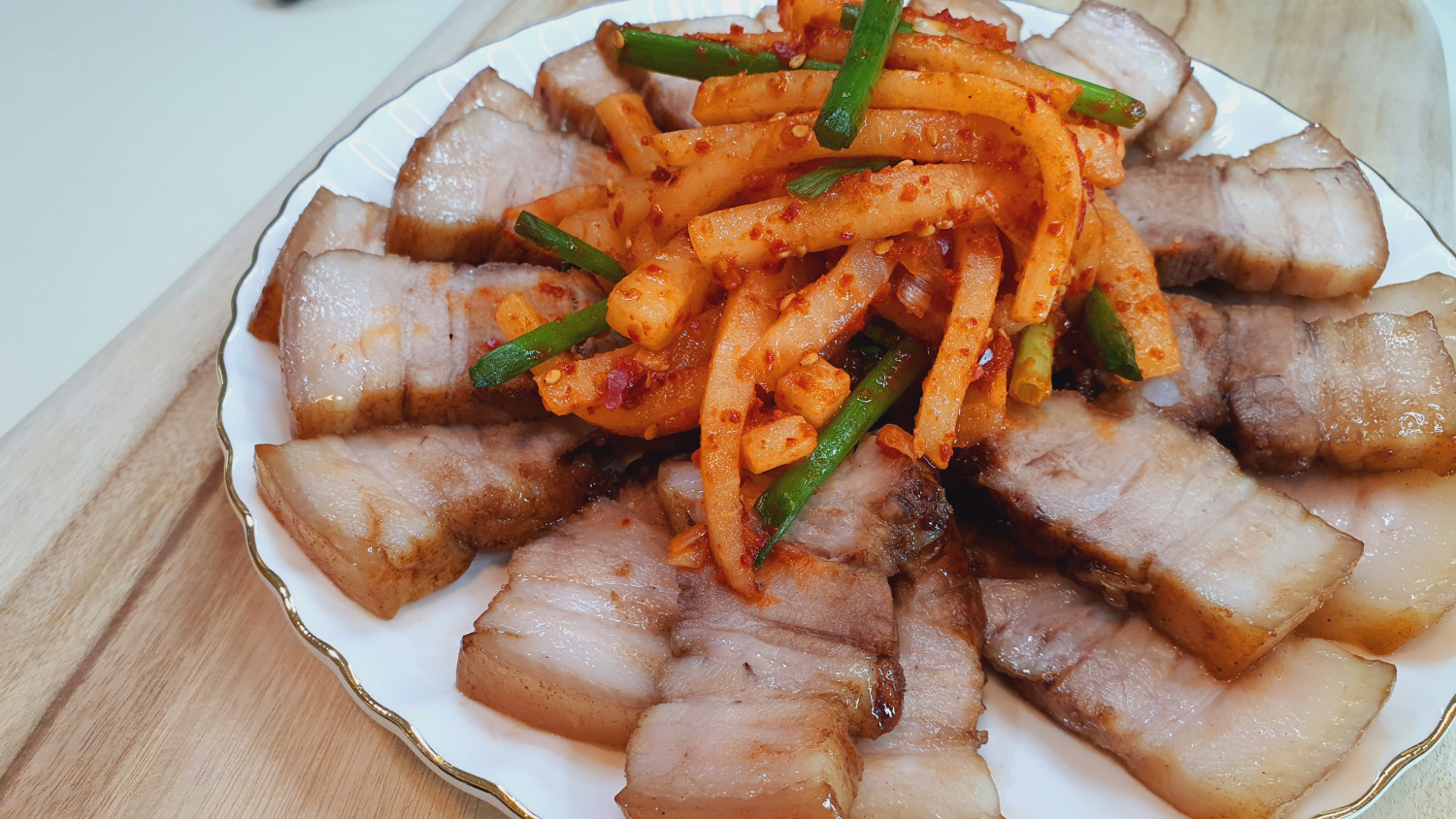 La tierna panceta de cerdo hervida, conocida como ‘Suyuk’, se combina con un glaseado de soja dulce y salado, perfectamente complementado por una refrescante ensalada de rábano rallado dulce y ácida. ¡Este plato es un éxito tanto con niños como con adultos! Esta receta es una preparación especial de la Chef Lee Soon-ok, presentada en el programa ‘Best Cooking Secrets’. Es ideal para un impulso de energía en verano, ofreciendo un delicioso equilibrio de sabores y texturas que despertarán tu apetito.