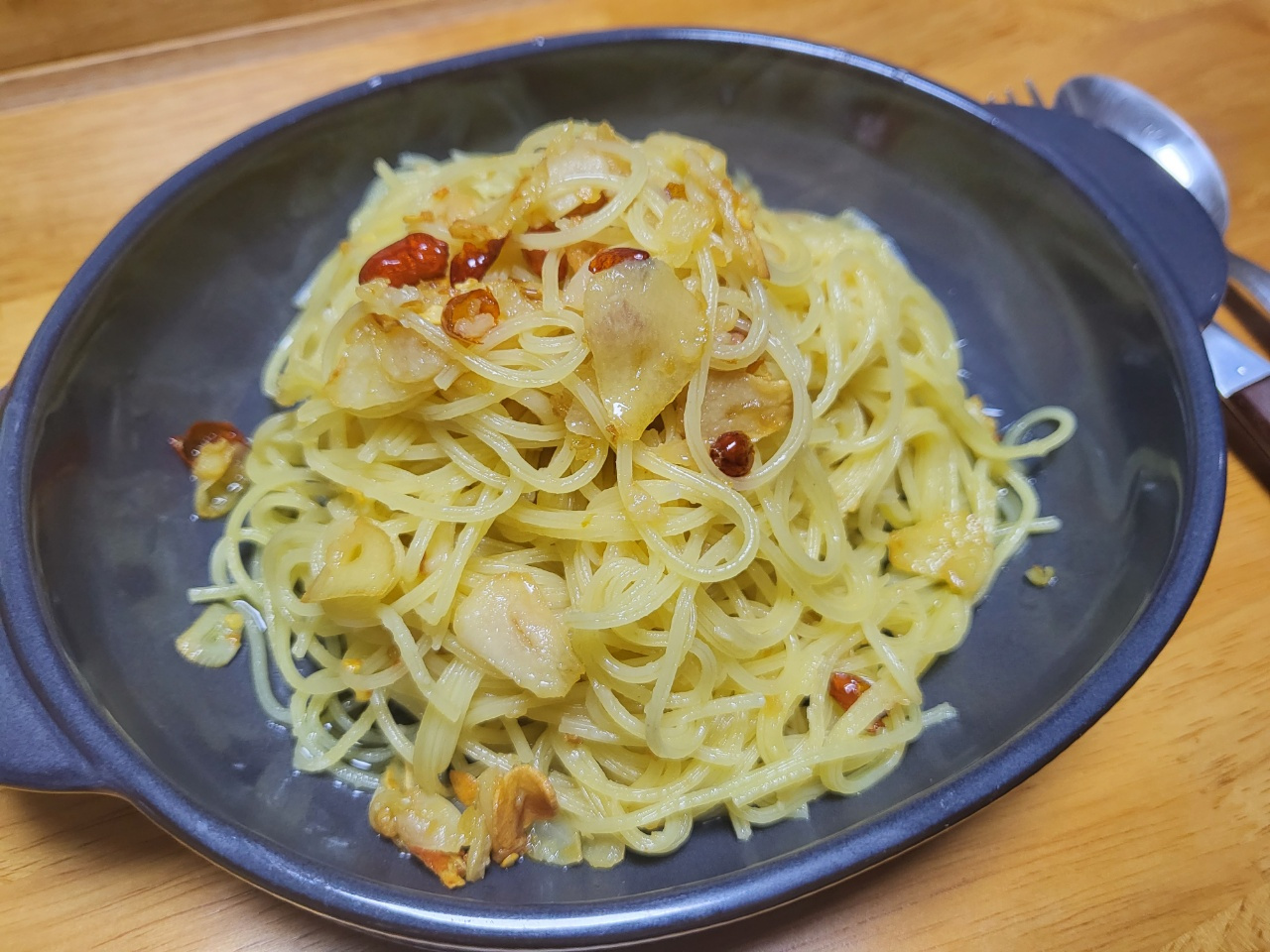 ¡Su deliciosa pasta Aglio e Olio está lista! Sírvanla inmediatamente caliente y disfruten de este plato simple pero satisfactorio.