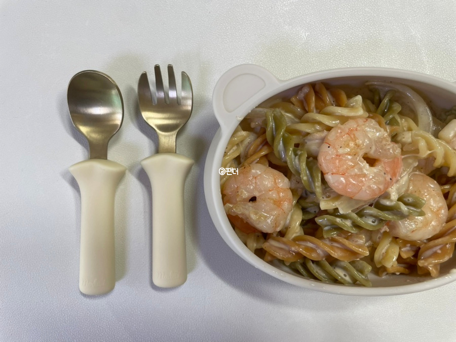 Para mi bebé que estaba en una etapa de comer selectiva, preparé esta pasta rica y cremosa con camarones y calamares, sus favoritos. Es una forma encantadora de introducir nuevos sabores y texturas.