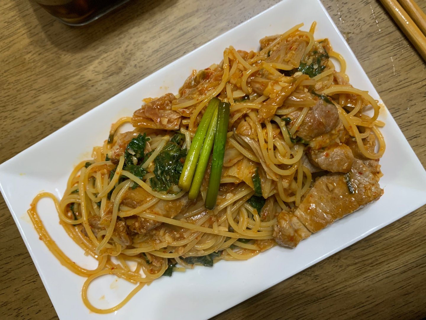 Una Comida Especial Hecha en Casa: Pasta de Kimchi con Panceta